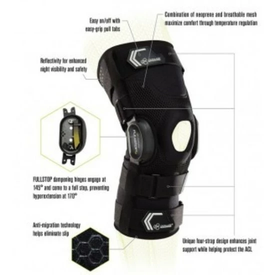 - The Performance® Bionic Fullstop Knee Brace focuses on fully protecting your ACL with full stop dampening hinges to halt movement so your rehabilitation process doesn’t regress.