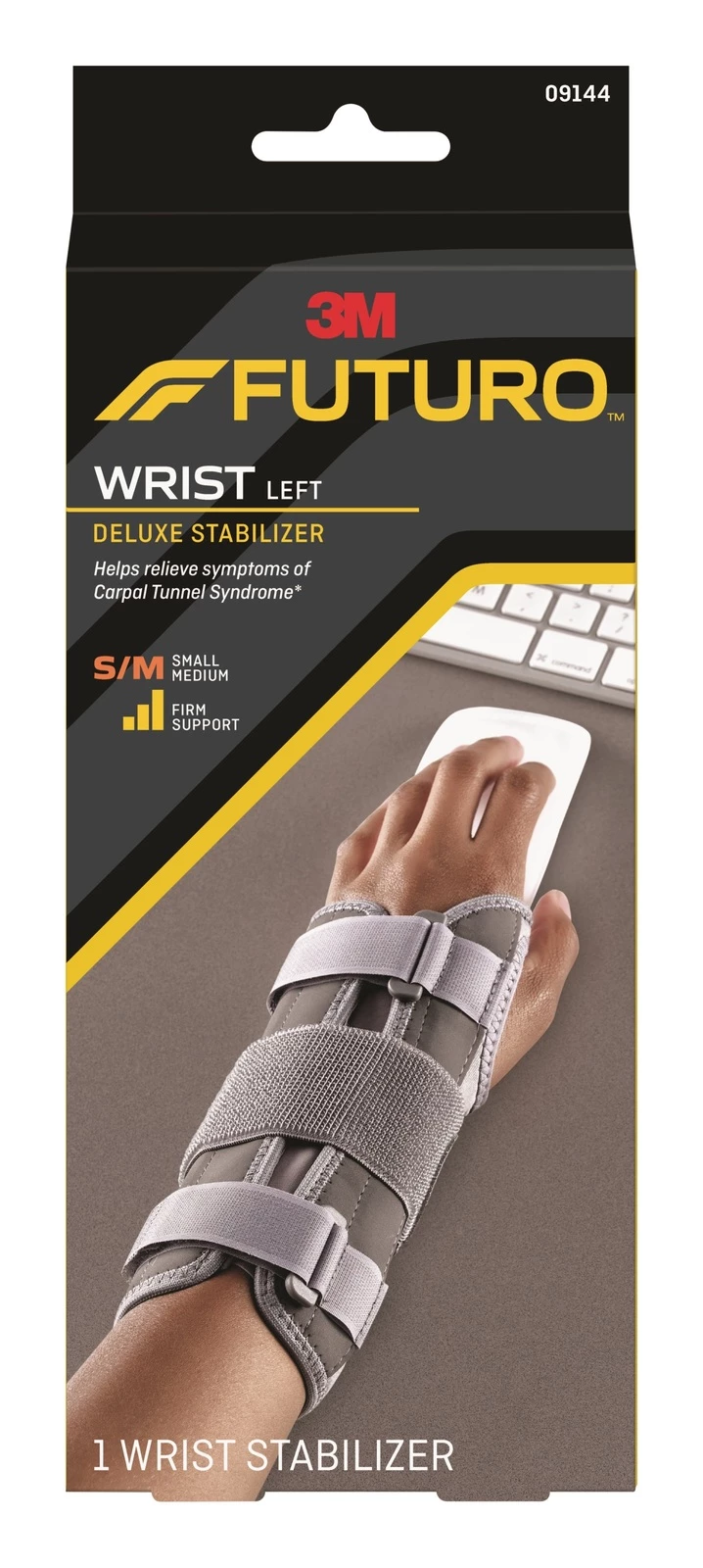 The FUTURO Deluxe Wrist Stabilizer delivers superior, stabilizing support to help relieve symptoms associated with Carpel Tunnel Syndrome. Adjustable features provide customizable support, and memory foam in the palm conforms comfortably to your hand. The ergonomic design delivers full range of motion to your fingers. Wrist injuries can affect your quality of life–so reach for the stabilizing comfort of the FUTURO Deluxe Wrist Stabilizer to help you get back to work and the activities you enjoy most.