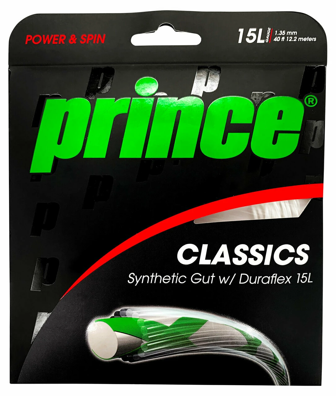 - Prince Synthetic Gut Duraflex 15L Set strings one racquet.