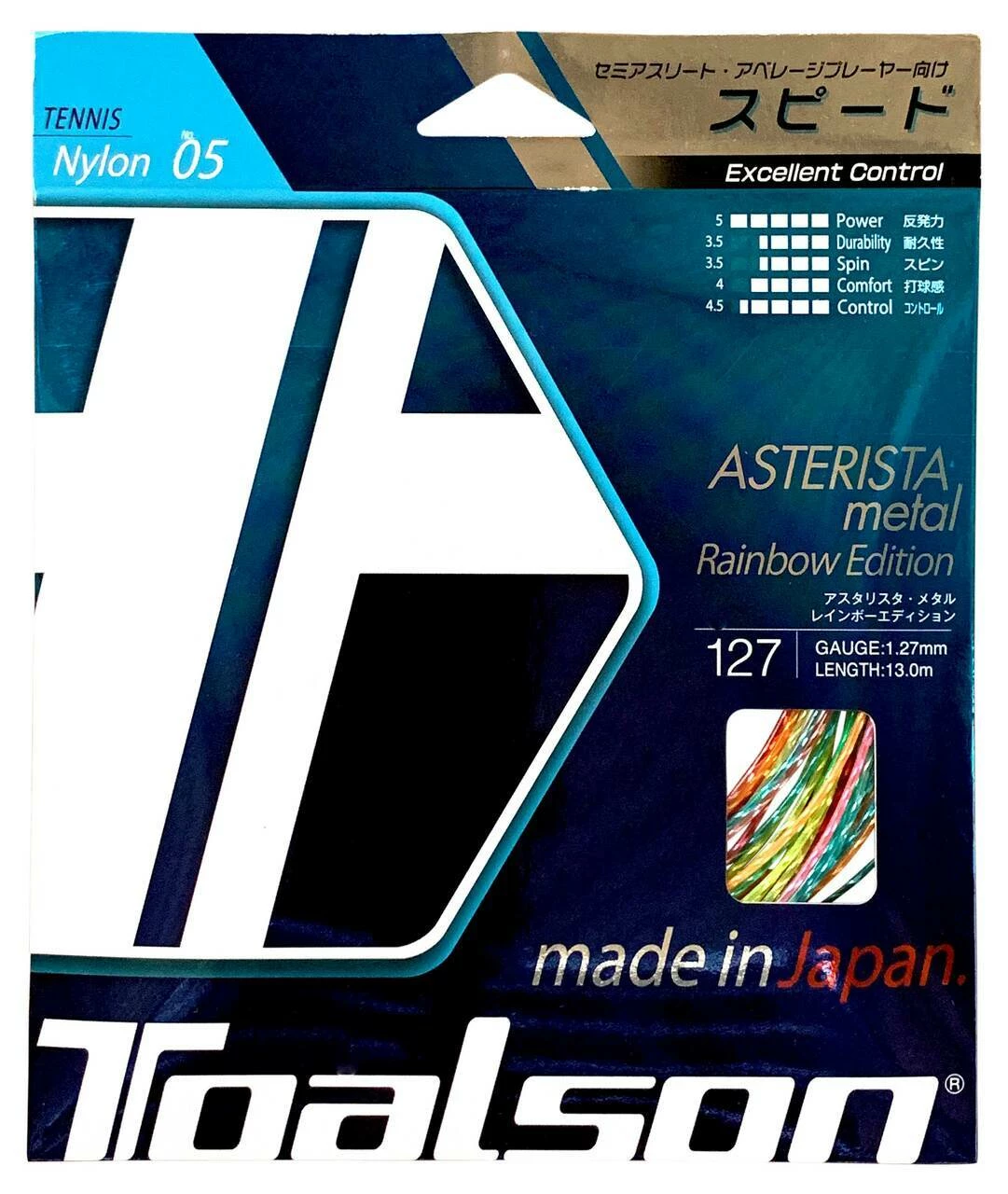Toalson Asterisk Metal Rainbow is a single wrapped monofilament tennis string.