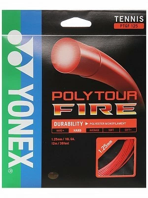Players with long, fast strokes should love Yonex Poly Tour Fire – a round polyester monofilament that will keep your biggest strokes inside the lines. The feel is firm but nicely dampened, with a surprisingly low level of shock on off-center hits. Yonex has made this string with its unique Silicone Oil Infused Filament (SIF) Technology. This is a manufacturing process that reduces stringbed friction, enabling the strings to snap back with vicious force (resulting in heavy spin).