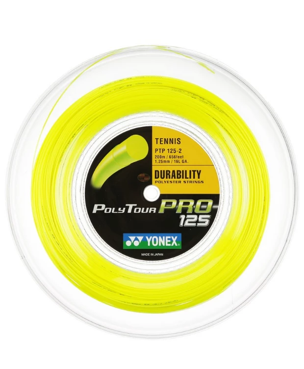 The Yonex Poly Tour Pro 125 is a softer playing poly string. This one is very, very spin-friendly. Power players will love the control and feel they get from all areas of the court. A solid, durable string that is a great choice for aggressive, big hitting players.